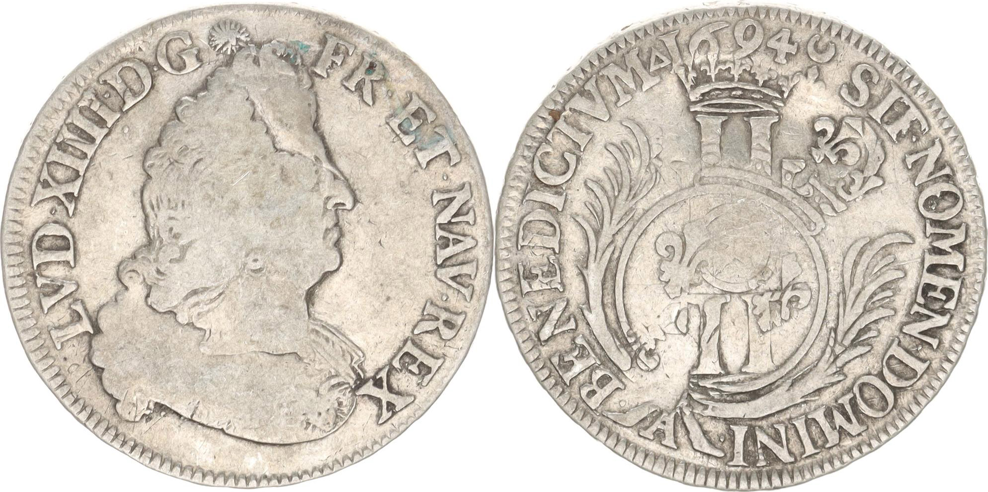 1/2 Ecu 1694 A - přeražba z typu - KM 250 (erb s liliemi) 13,369 g