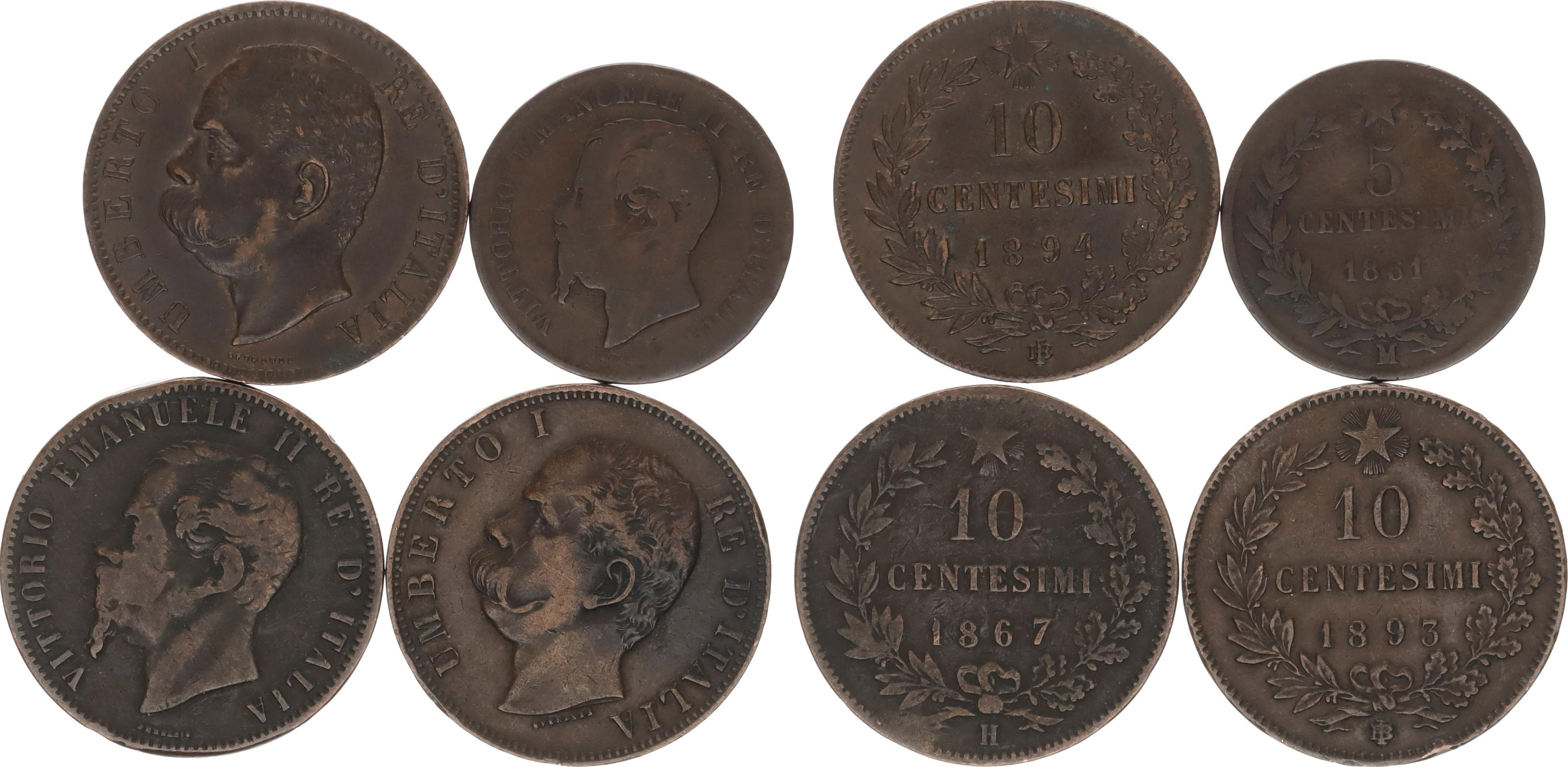 10 Centesimi 1867 H, 1893 BI, 1894 BI; +5 Centesimi 1861 M 4 ks