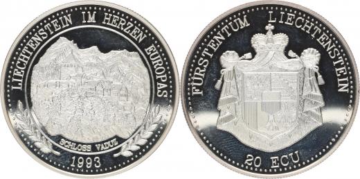 20 Ecu 1993 - hrad Vaduz Ag 925 25,00 g kapsle
