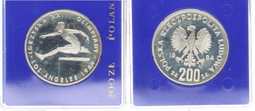 200 Zlotych 1984 MW - OH Los Angeles, překážkový běh Y. 150orig. etue