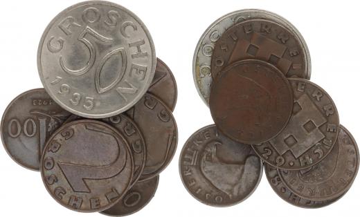 100 Kronen 1923 (ohlý), 1924; +1 gr. 1927; +2 gr. 1925, 1928, 1929; +50 gr. 1935 7 ks