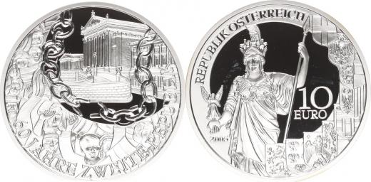 10 Euro 2005 - 60. výročí 2. republiky KM 3121 (Ag 925 16 g) kapsle, +orig. etue +certifikát