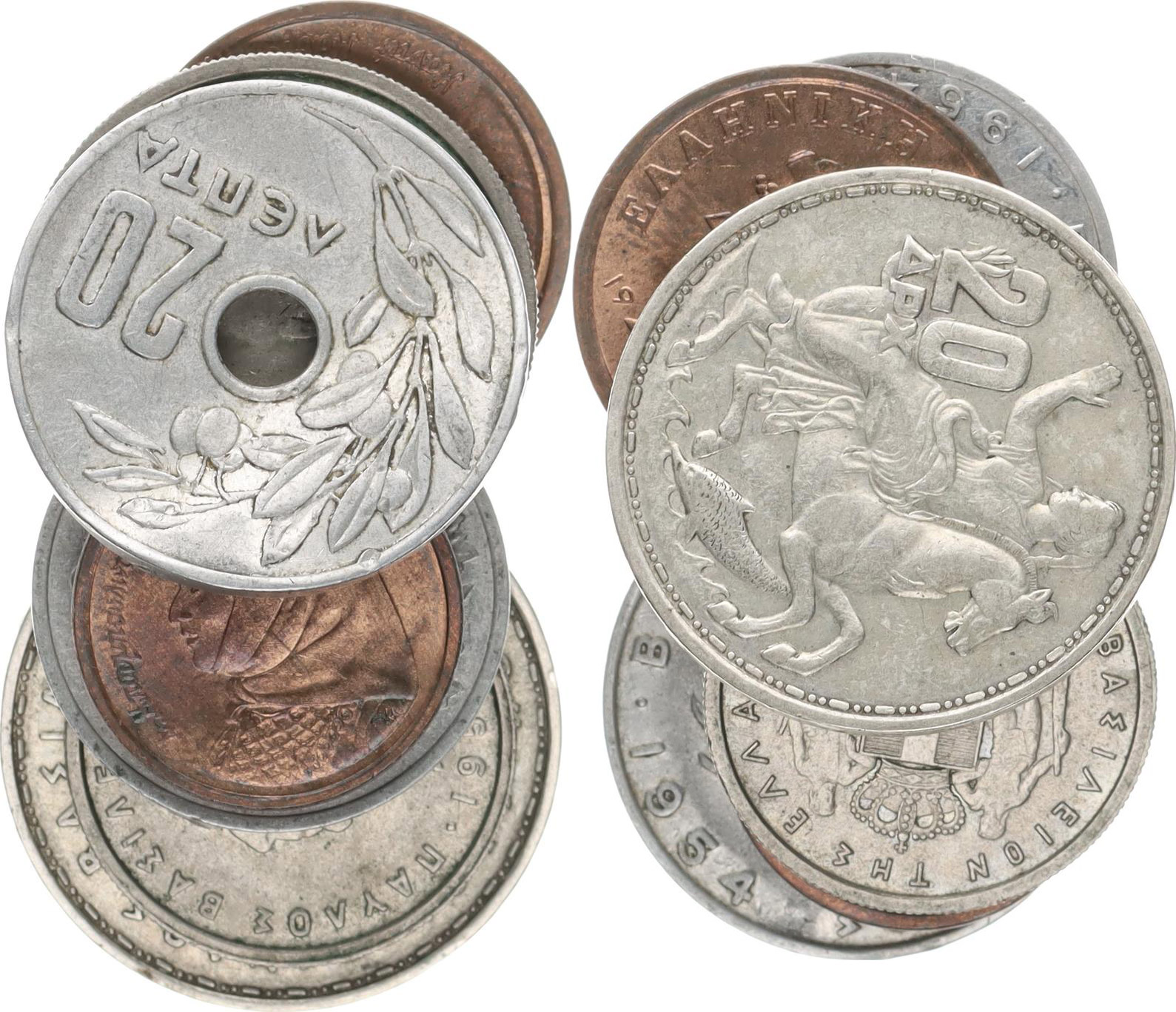 10, 20 Lepta 1, 2 Drachmai 1954; +1, 2 Drachmai 1988; +20 Drachmai 1960 7 ks