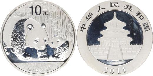 10 Yuan 2011 - Panda / Chrám KM 1980 Ag 99931,11 g