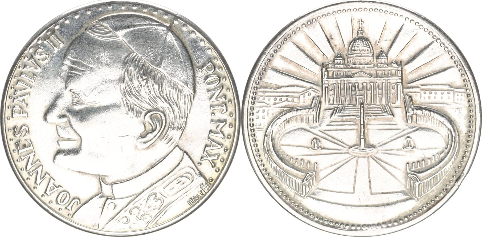 Itálie - Joannes Paulus II. Pont. Max., portrét zleva / Chrám sv. Petra a náměstí ve Vatikánu, bez textu zn. ITALY bílý kov 35 mm 16 g