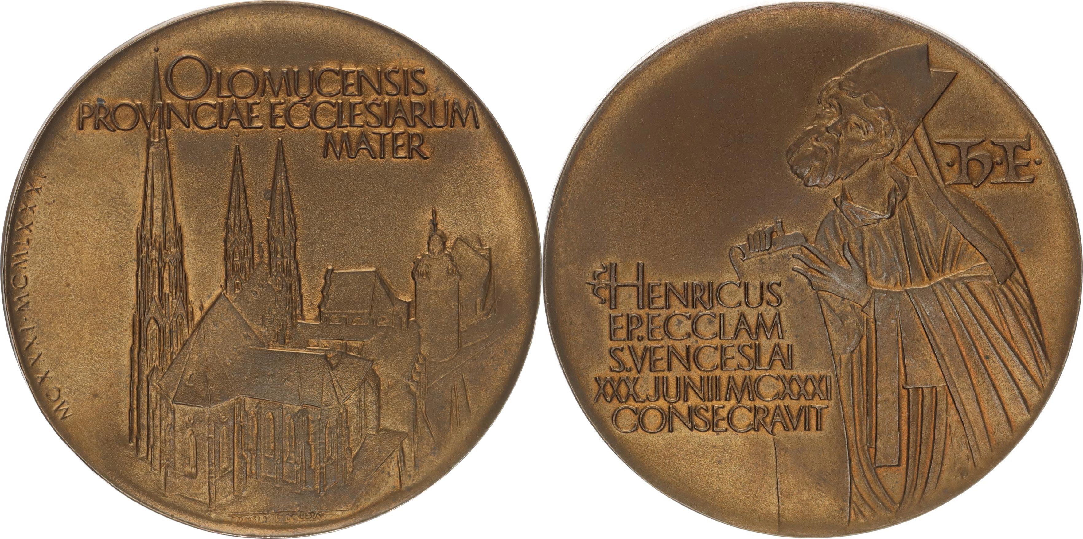 850 let konsekrace dómu sv. Václava v Olomouci 1131- 1981 /biskup Zdík sign.: GRMELA/DOLEŽAL bronz 60 mm PMP B/11a původní etue