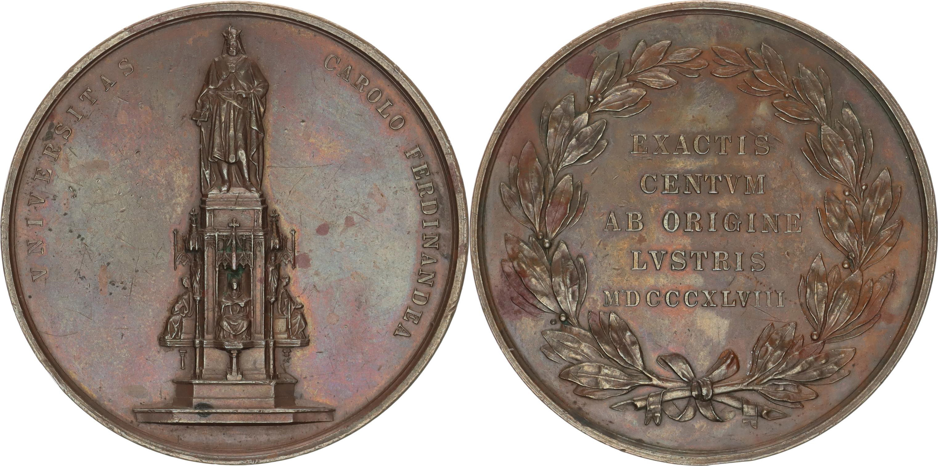 500. výročí založení Karlovy univerzity v Praze 1848, 5-ti řádkový nápis / Novogotický pomník Karla IV. bez signatury ! bronz 52 mm (70,45 g) NL; Taul 1954_nep. hr.
