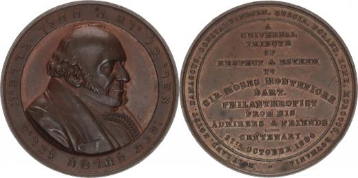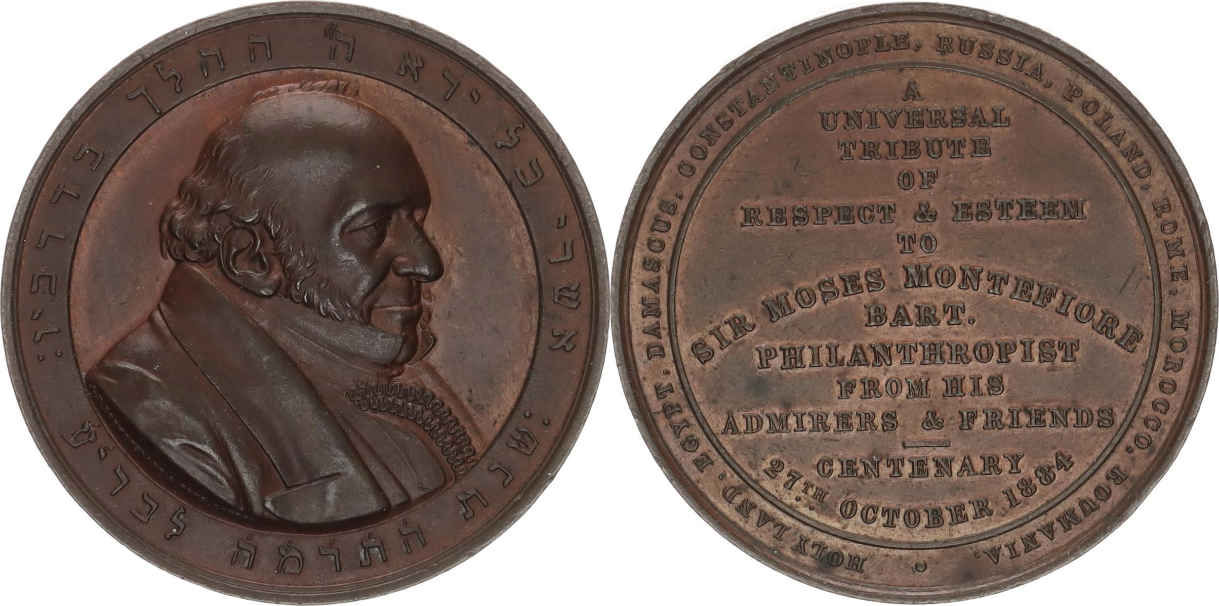 Sir Moses Montefiore, poprsí zprava / 100. výročí narození 27.X.1884, nápisy raž.: Loewenstark & Sons London Cu 40 mm"RR"