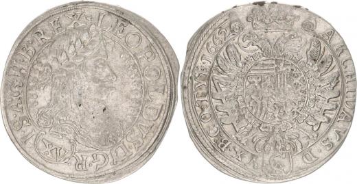 XV kr. 1662 CA, Vídeň-Cetto Hol.62.4.1 typ se zatočenou stuhou v Rv. "RR"_mělčí ražba, tém.