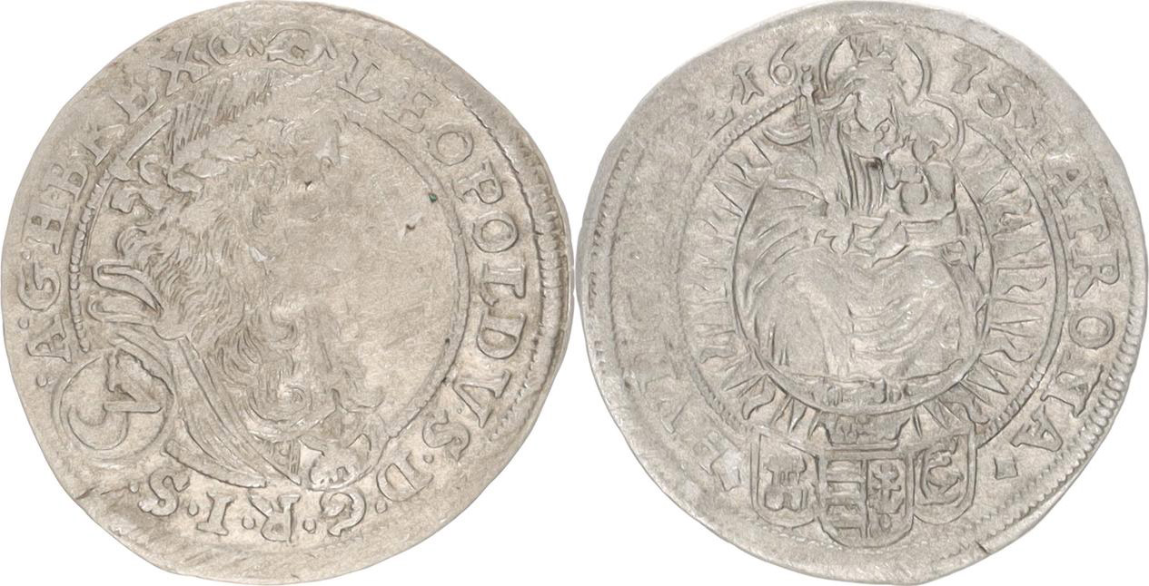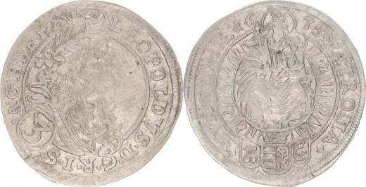 3 kr. 1675 CC, Bratislava-Cetto Husz. - jako 1476 var.: nadhlavou arabeska, interpunkce z teček "R"_mělčí ražba