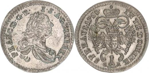 1 kr. 1758 G-R, Štýrsko Graz "R"