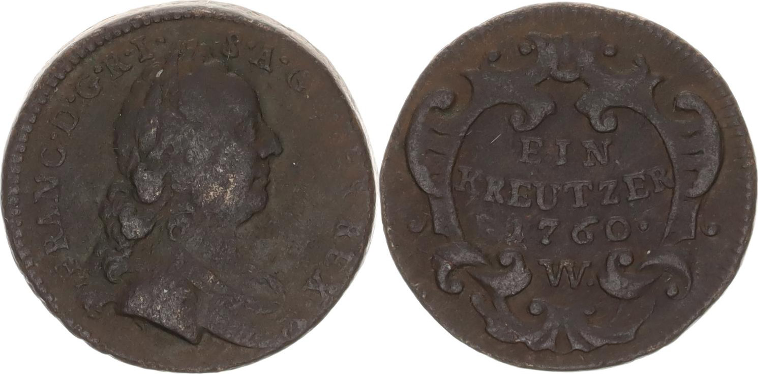 1 kr. 1760 W, Vídeň - var.: tečka za značkou