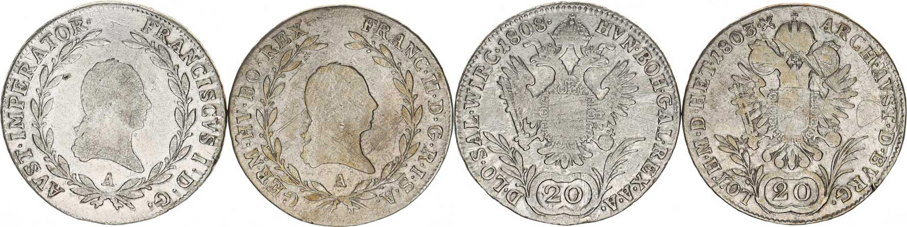 František I. (1792-1835), 20 kr. 1803 A, 1808 A 2 ks