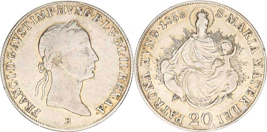 František I. (1792-1835), 20 kr. 1833 B - Madona "R", mělčí ražba, tém.