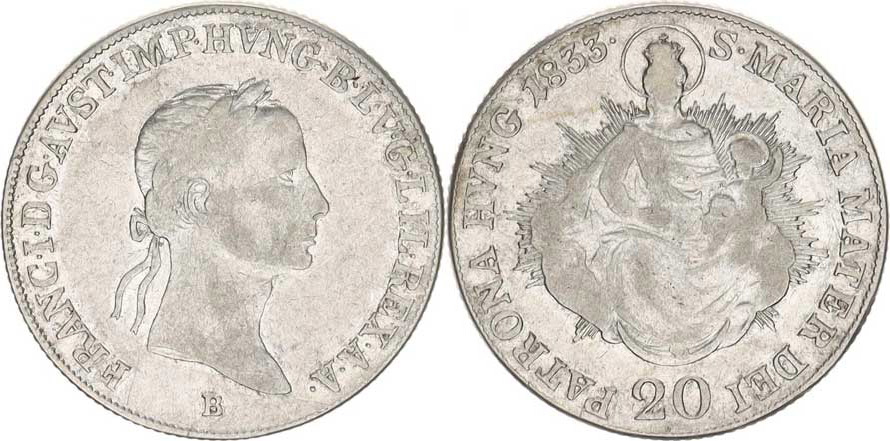 František I. (1792-1835), 20 kr. 1833 B - Madona "R", tém.