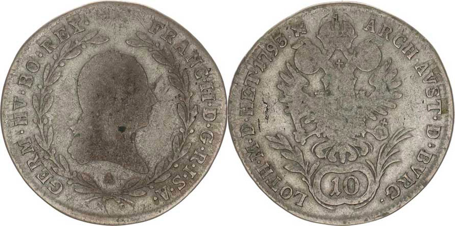 František I. (1792-1835), 10 kr. 1793 A, tém.