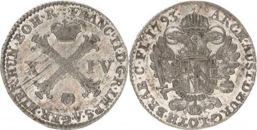 František I. (1792-1835), XIV Liards 1793, Brusel "R", dr. rys.