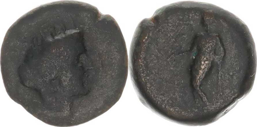 AE 18 - hlava s hradební korunou zprava / stojící postava (4,073 g)