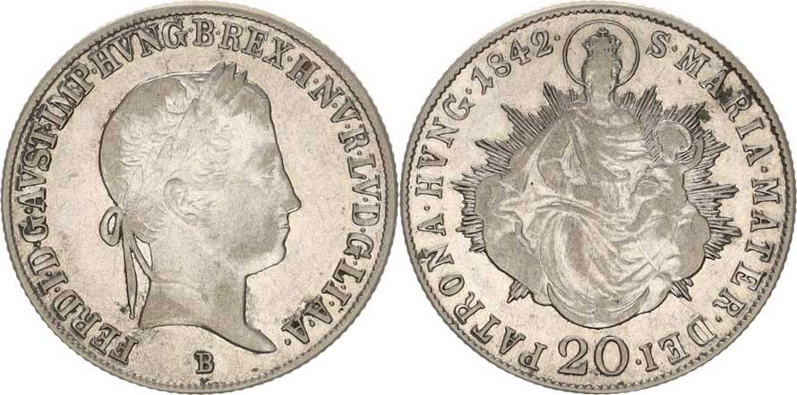 Ferdinand V. (1835-1848), 10 kr. 1842 B, mělčí ražba