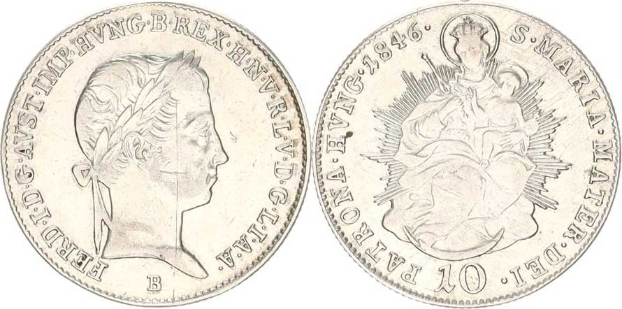 Ferdinand V. (1835-1848), 10 kr. 1846 B, dr. rys.
