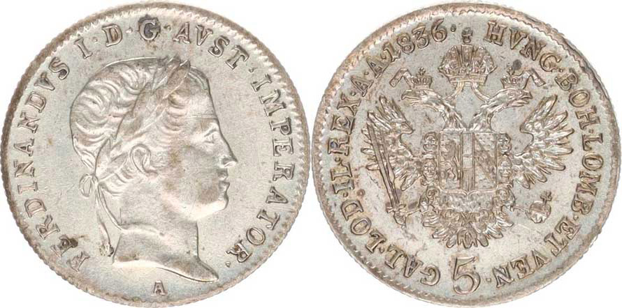 Ferdinand V. (1835-1848), 5 kr. 1836 A - FERDINANDVS "R"