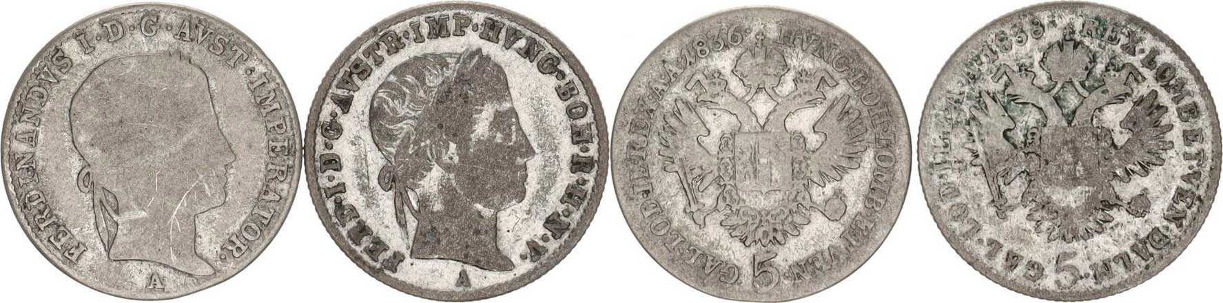 5 kr. 1836 A - FERDINANDVS "R" 5 kr. 1838 A 2 ks