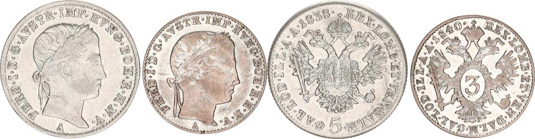 Ferdinand V. (1835-1848), 5 kr. 1838 A; +3 kr 1840 A 2 ks