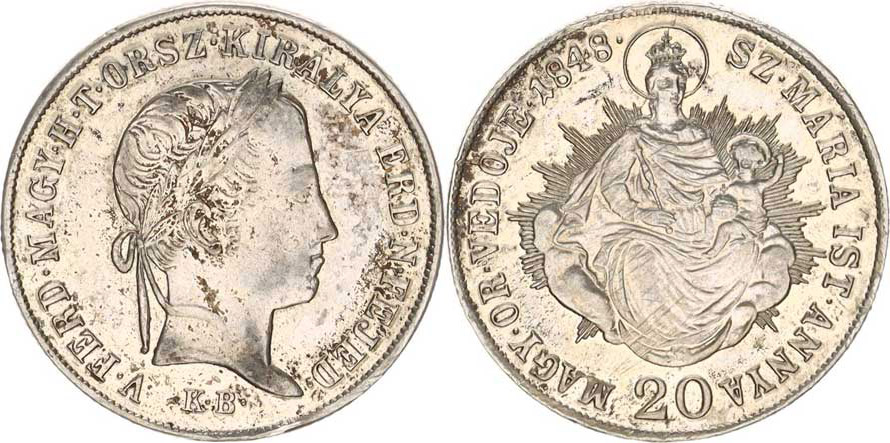 Revoluce 1848-1849, 20 kr. 1848 KB, mírně just.