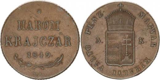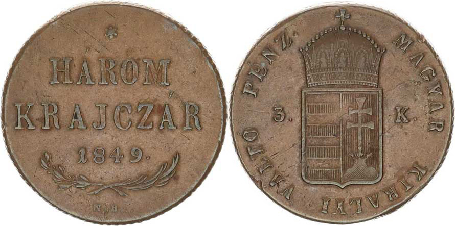 Revoluce 1848-1849, Három = 3 Krajczár 1849 NB, dr. hr., tém.