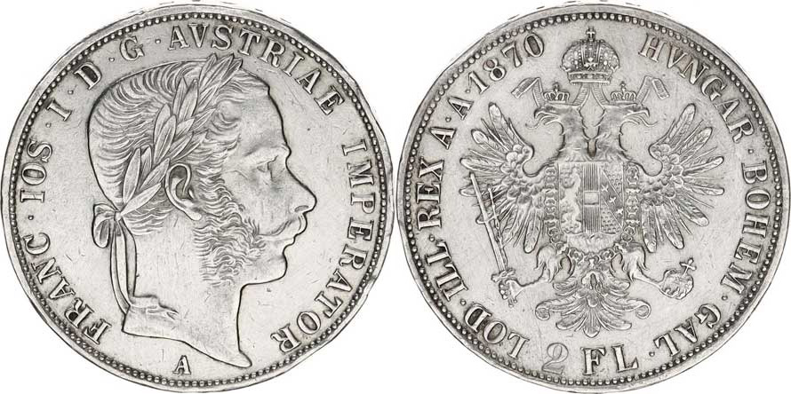 František Josef I.(1848-1918), Dvouzlatník 1870 A, hry.