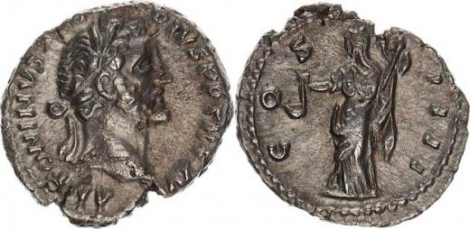 Antoninus Pius (138-161), Denár, stoj.Vesta drží simpulum a palladium