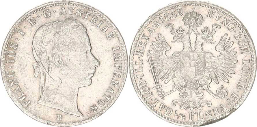 František Josef I.(1848-1918), 1/4 Zlatník 1858 B "R", hr.
