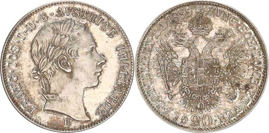 František Josef I.(1848-1918), 20 kr. 1855 B