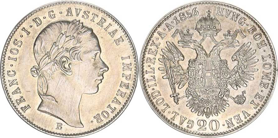 František Josef I.(1848-1918), 20 kr. 1856 B