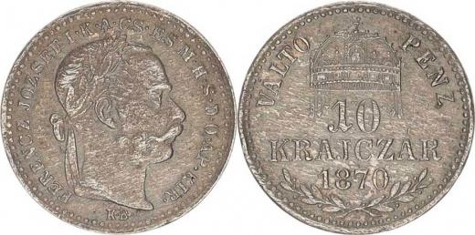 František Josef I.(1848-1918), 10 kr. 1870 KB "R", patina, tém.