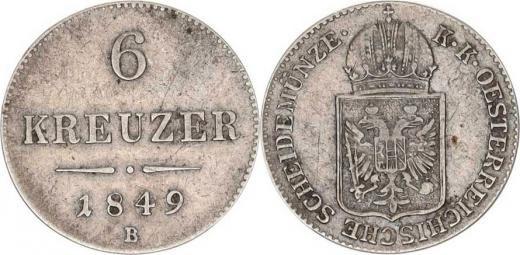 František Josef I.(1848-1918), 6 kr. 1849 B "RR"
