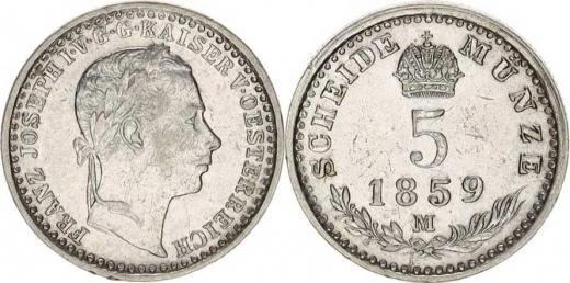 František Josef I.(1848-1918), 5 kr. 1859 M "R", dr. rys.