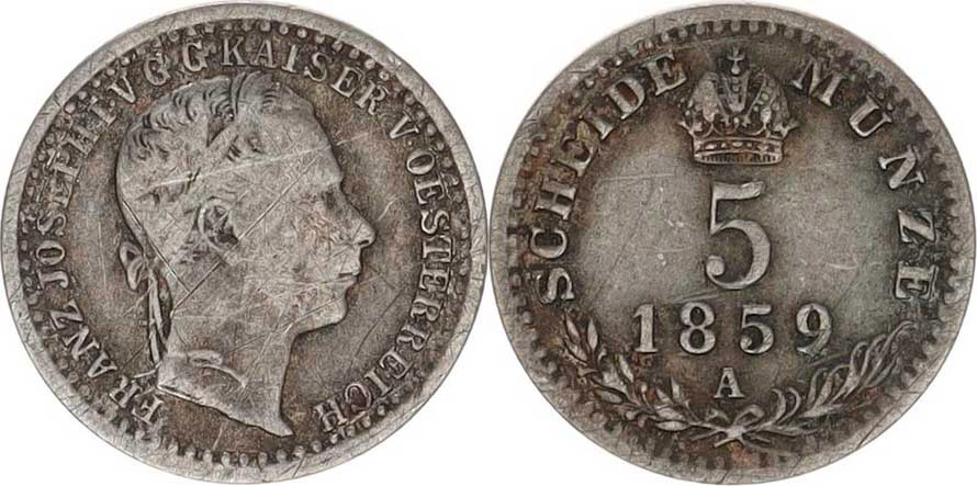 František Josef I.(1848-1918), 5 kr. 1859 A