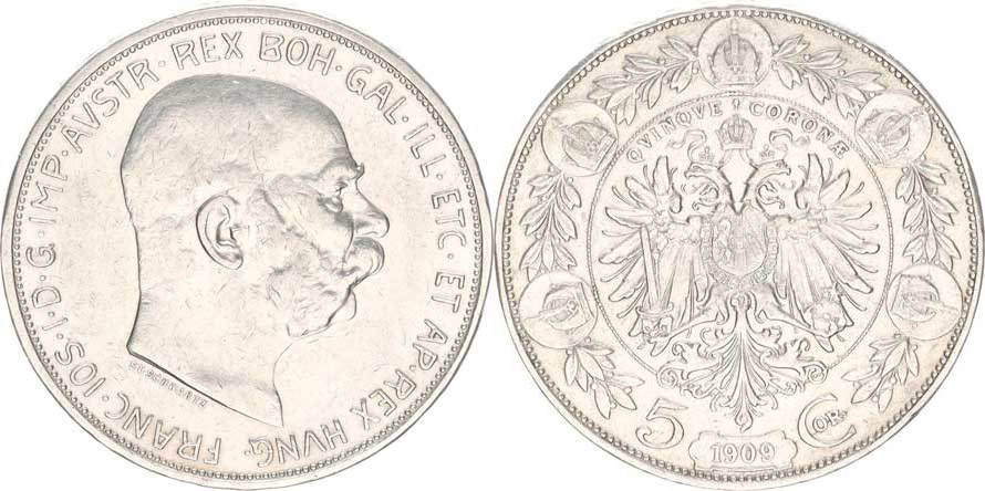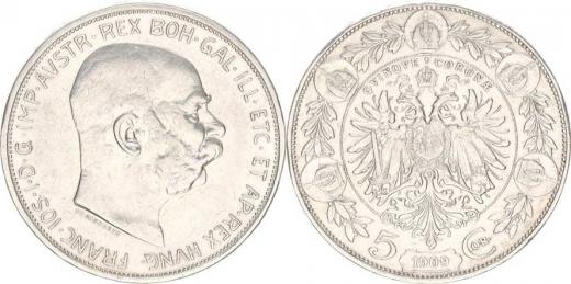 František Josef I.(1848-1918), 5 Koruna 1909 b.zn. - Schwartz