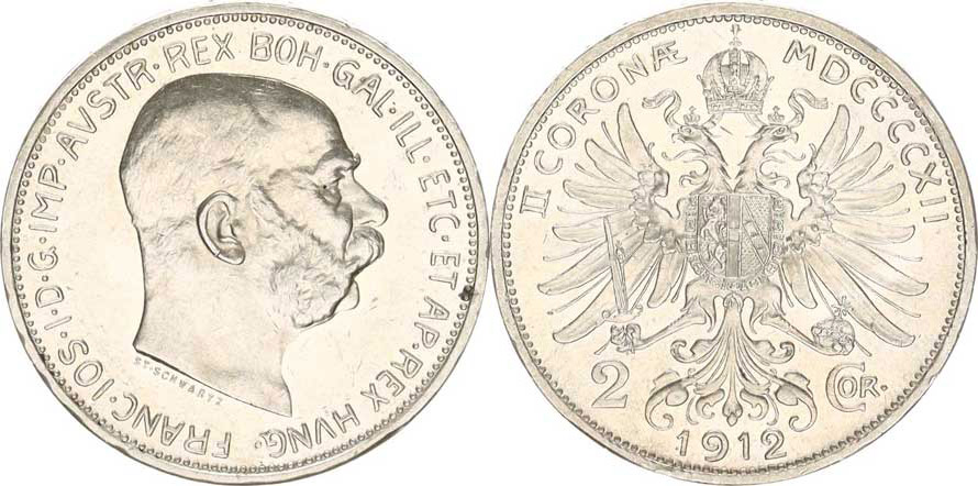 František Josef I.(1848-1918), 2 Koruna 1912 b.zn. "sbírkový stav"
