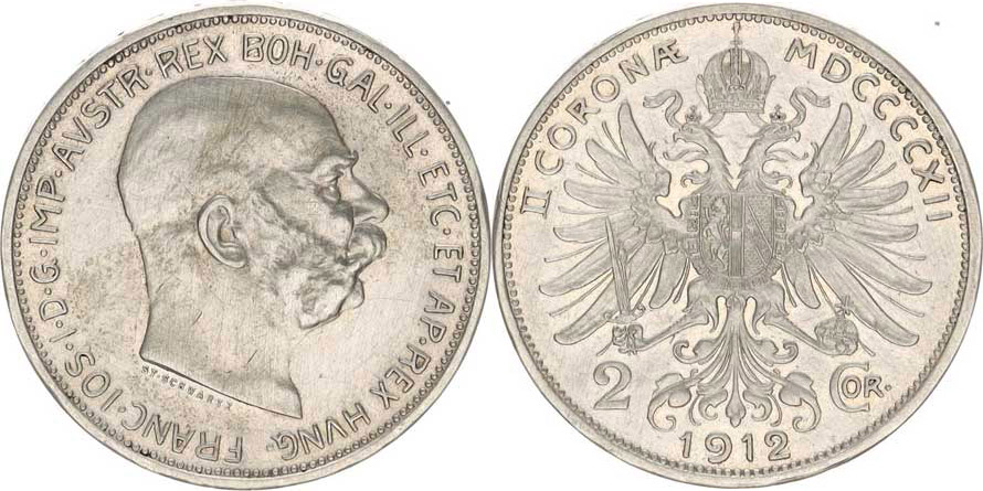 František Josef I.(1848-1918), 2 Koruna 1912 b.zn.
