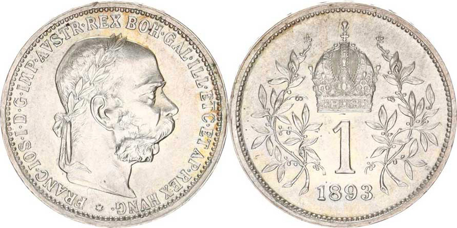 František Josef I.(1848-1918), 1 Koruna 1893 b.zn.