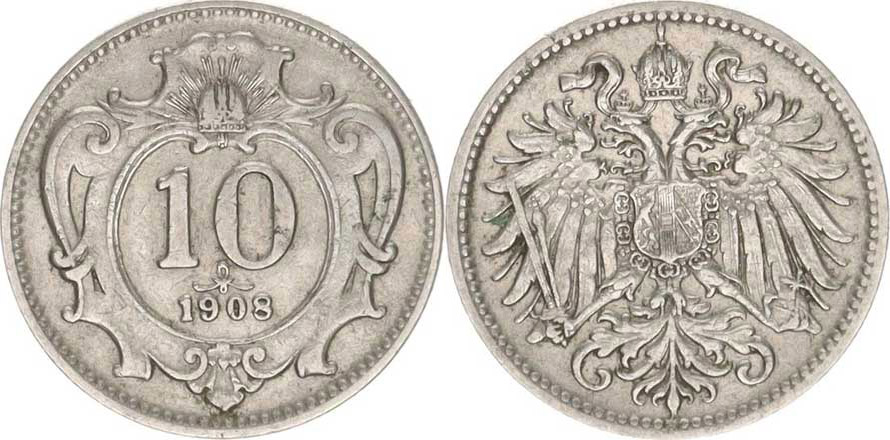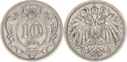 František Josef I.(1848-1918), 10 hal. 1908 b.zn.