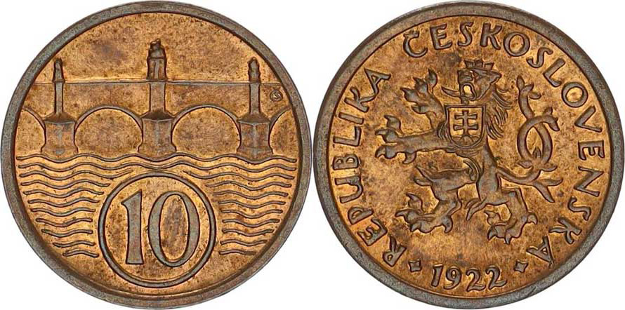 Údobí let 1918-1938, 10 hal. 1922, tém.