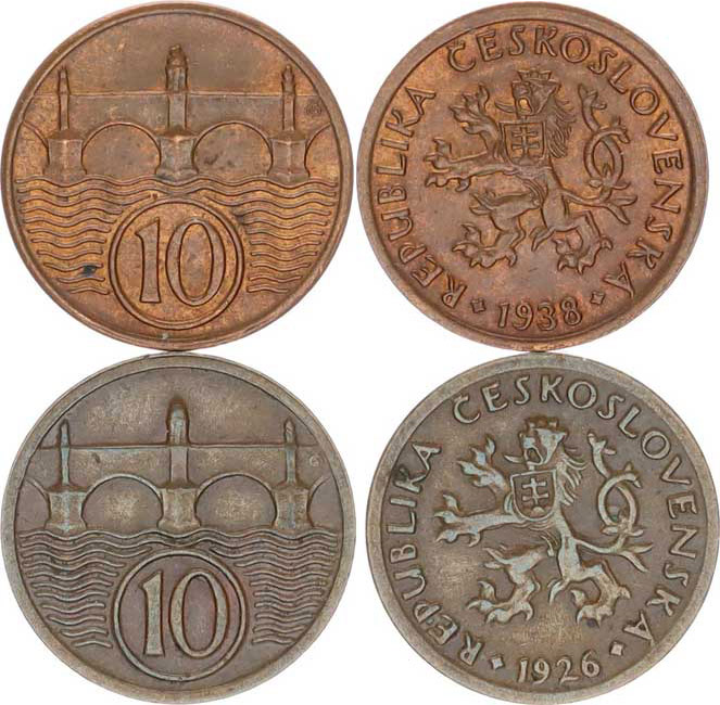 Údobí let 1918-1938, 10 hal. 1926, 1938 2 ks