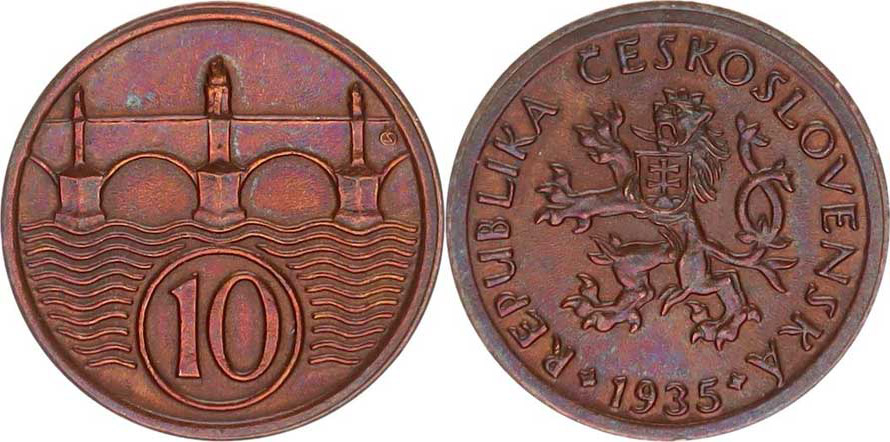 Údobí let 1918-1938, 10 hal. 1935 "R"