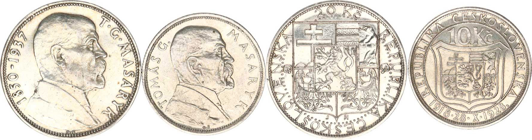 Údobí let 1918-1938, 10 Kč 1928 - TGM; +20 Kč 1937 - TGM 2 ks