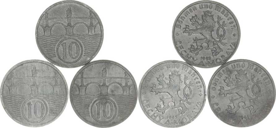 Protektorát Čechy a Morava (1939-1945), 10 hal. 1941, 1942, 1943 3 ks