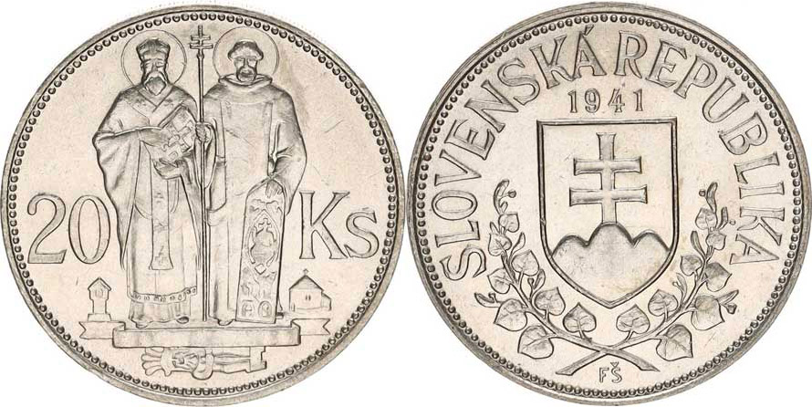 Slovensko (1939-1945), 20 KS 1941 - Cyril a Metoděj, jednoduchý kříž