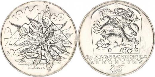 25 Kčs 1969 - SNP, opis čitelný z Av. (plameny)